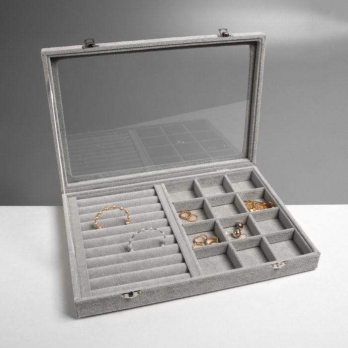 Подставка под кольца 100 полос, флок, 35 х 24 х 3 см, цвет чёрный