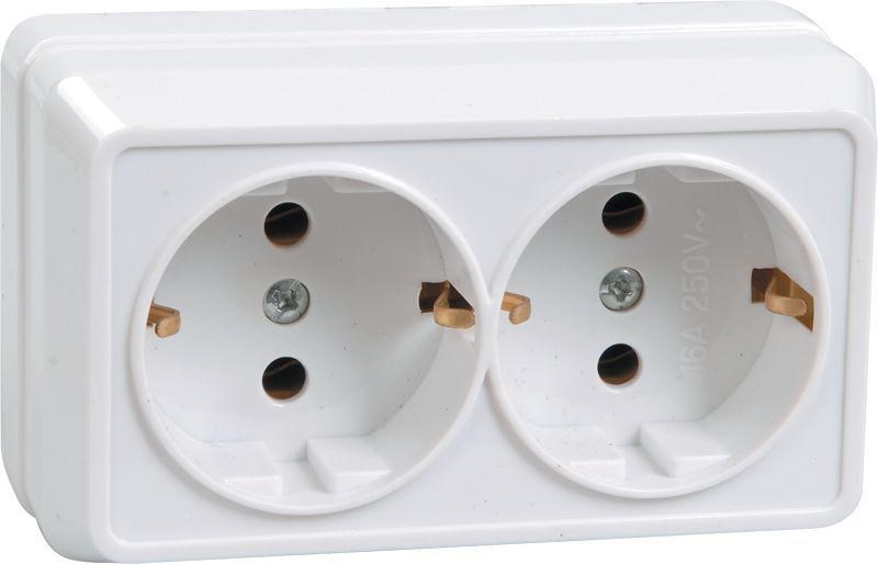 Розетка "Элект" RA 16-237-ЧС, 16 А, 250В, двухместная, открытая, без з/к,черная под серебро