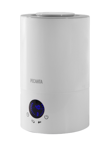 В блок прибора попадает воздух из помещения. На ультразвуковую мембрану, расположенную внутри, из резервуара поступает дозированное количество воды, которая с помощью ультразвука расщепляется на мелкодисперсный пар (холодный). Данный пар с помощью воздуха через сопло поступает в помещение, повышая уровень влажности