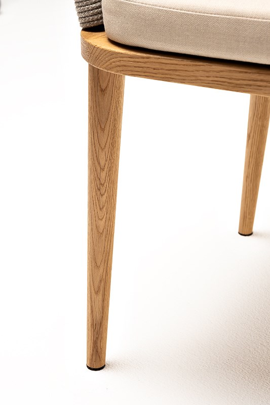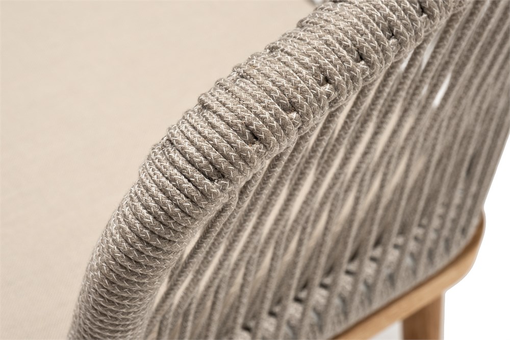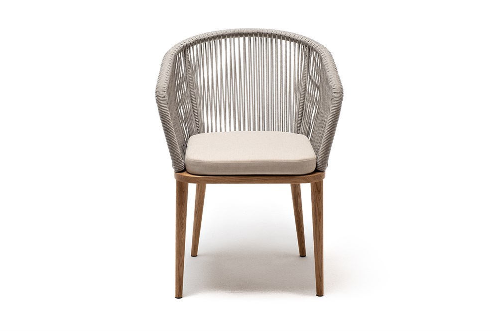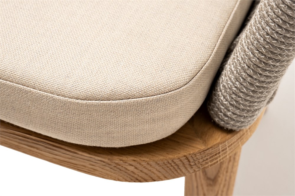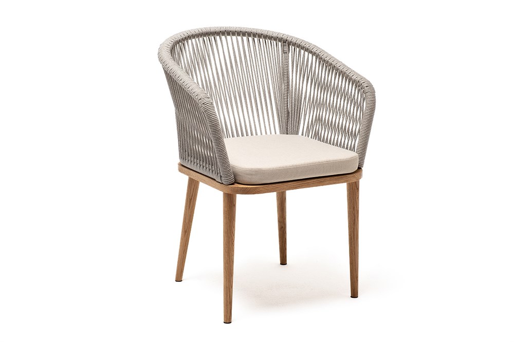 "Марсель" стул плетеный из роупа, основание дуб, роуп серый меланж круглый, ткань бежевая 052