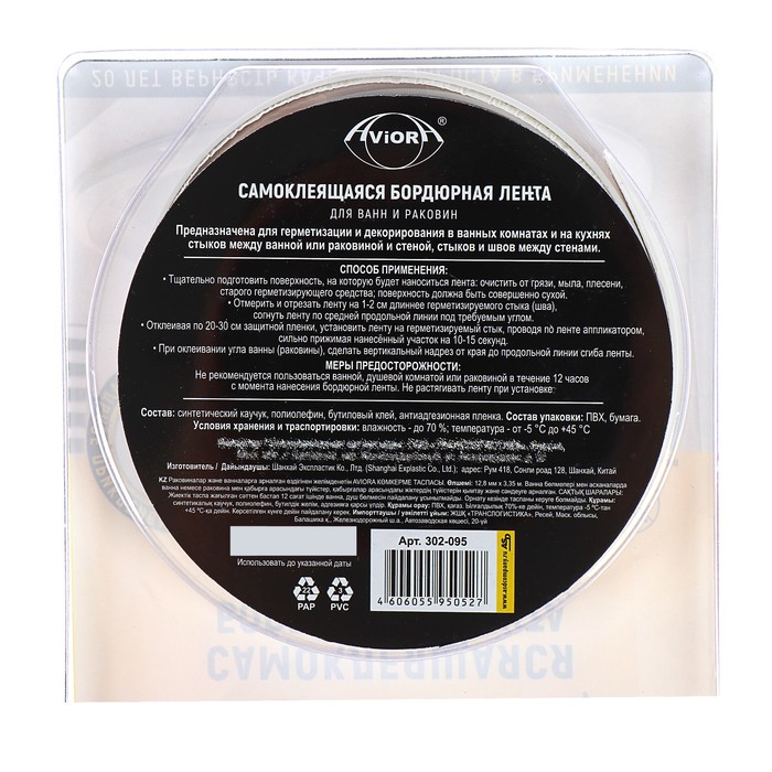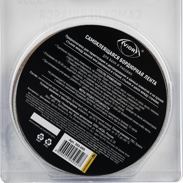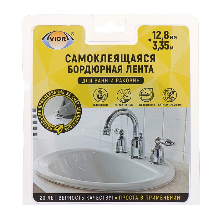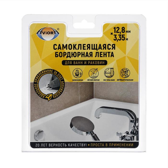 Бордюрная самоклеящаяся лента Aviora для ванн и раковин, 12,8 мм х 3,35 м