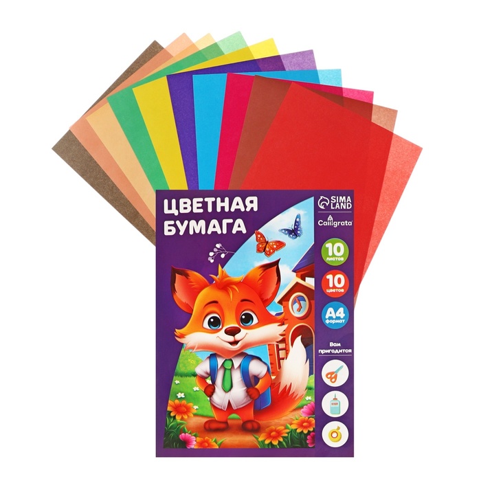 Бумага цветная А4, 10 листов, 10 цветов Calligrata, офсет, в папке