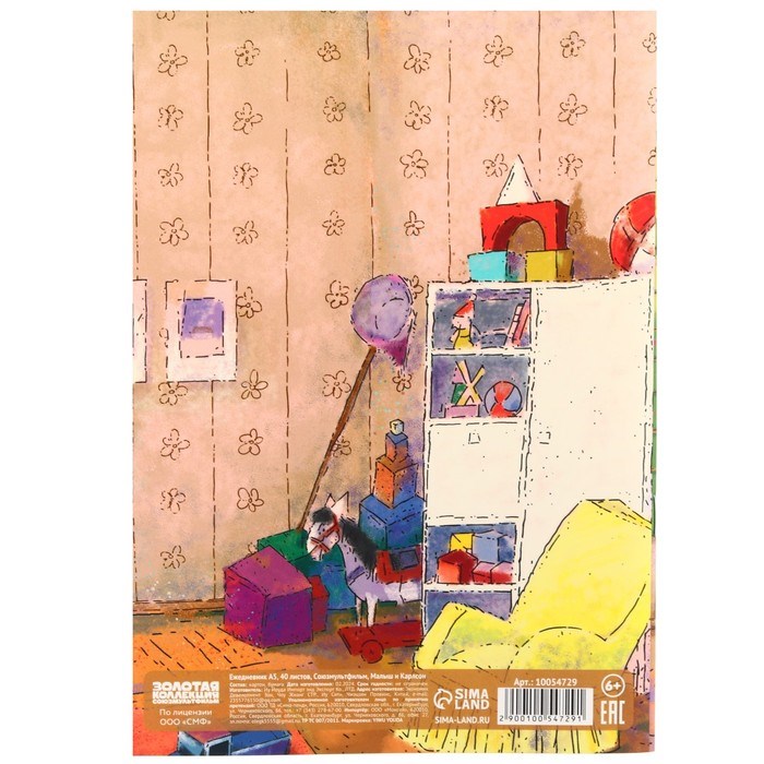 Ежедневник А5, 40 листов, Союзмультфильм, Малыш и Карлсон