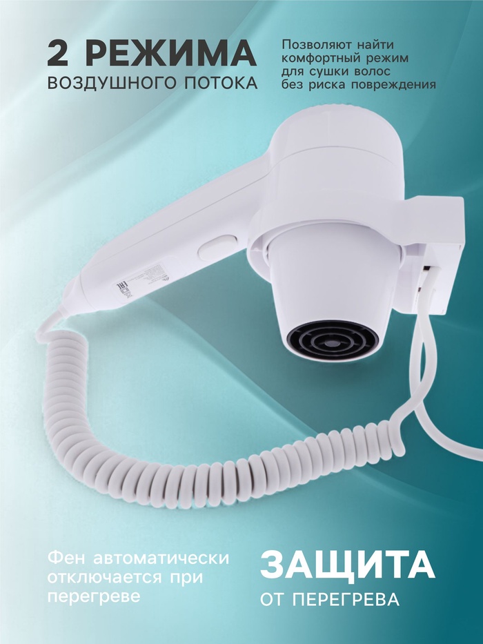 Компактный фен для волос LGE-005 с настенным креплением подойдёт для быстрой домашней укладки. С его помощью вы можете сделать естественную укладку без особых усилий, а оптимальная мощность устройства сократит время процесса.