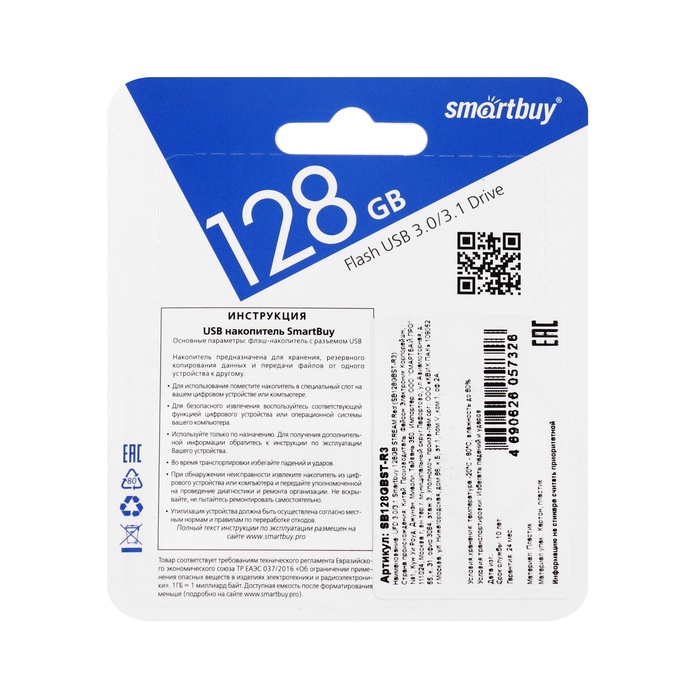 Флешка SmartBuy 128GB STREAM, 128 Гб, USB3.0, чт до 75 Мб/с, зап до 25 Мб/с, красная