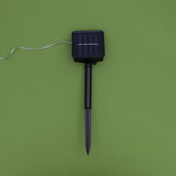 Гирлянда «Нить» 10 м роса, IP44, серебристая нить, 100 LED, свечение жёлтое, 2 режима, солнечная батарея