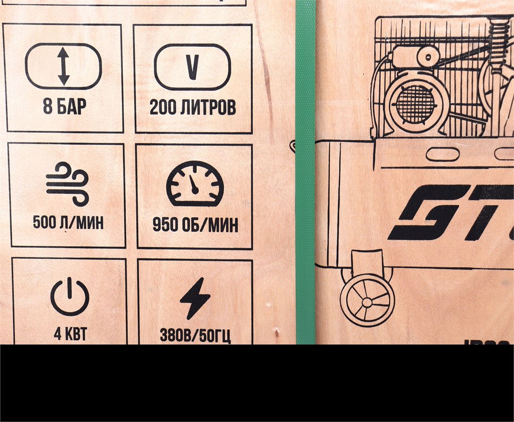 GTE-MR200A500A — Компрессор пневматический 380В 4.0кВт 8атм. 500л/мин. ресивер-200л поршн. ремен. одноступенчатый GTE — Компрессор поршневой с ременным приводом одноступенчатый 380 В, ресивер 200 л, 500 л/мин. Объем ресивера: 200 л; С
