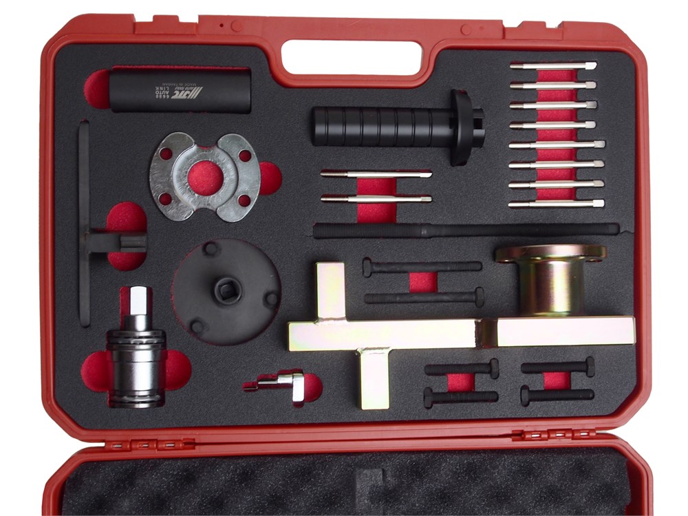 Комбинированный набор предназначен для установки и демонтажа заслонки коленвала, установки сальника коленвала, направления компрессора, фиксации маховика, выравнивания ДКТ и топливной трубки. Применение: двигатель JLR V6, 3.0 F-типа, ХЕ, Rаngе Roveг и Range Rover sport. Номер JM: 300-1437, 303-1438, 303-1439, 303-1440, 303-1441, 303-1433, 303-1434, 303-1303, 303-1304, 303-1449-01, 3030-1449-02, 310-200-01.