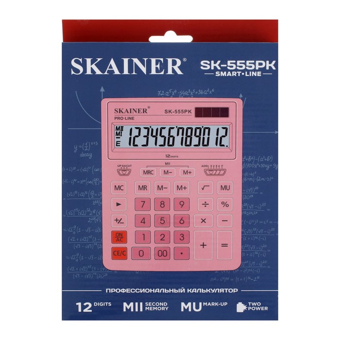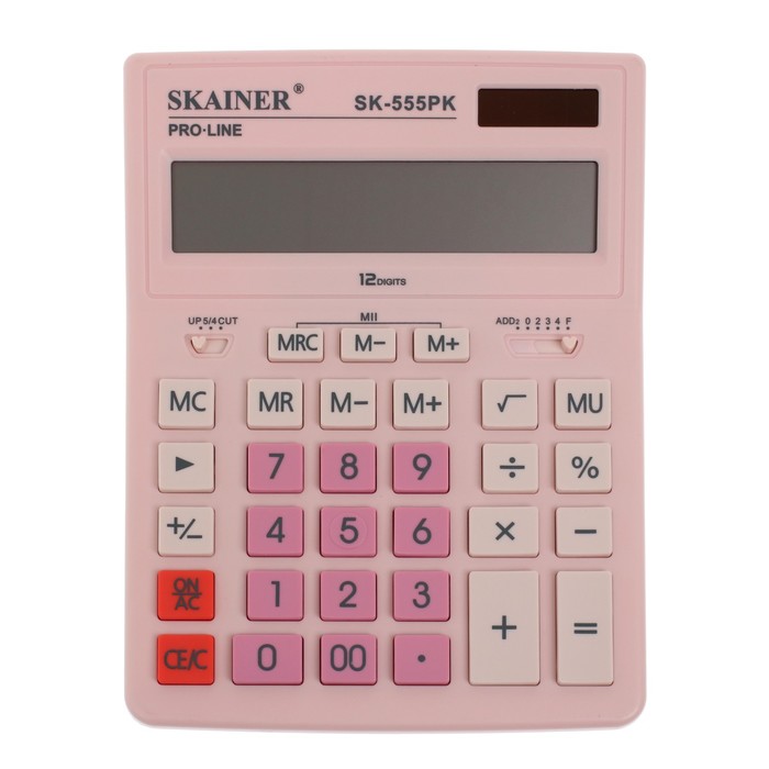 Калькулятор настольный большой, 12-разрядный, SKAINER SK-555PK, 2 питание, 2 память, 155 x 205 x 35 мм, розовый