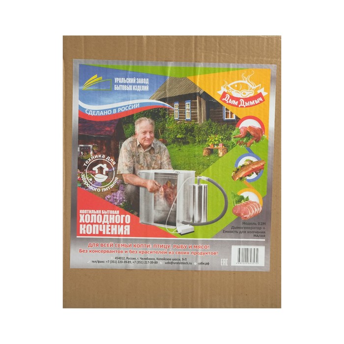 Захотелось копчёного мяса или рыбки? Коптильня холодного копчения «Дым Дымыч» приготовит вкусную и здоровую пищу. Натуральный густой дым температурой от 19 до 40 °C выводит из продуктов бактерии и вредоносные микроорганизмы. Приготовленная в коптильне еда аппетитно пахнет дымком, отчего становится ещё вкуснее!