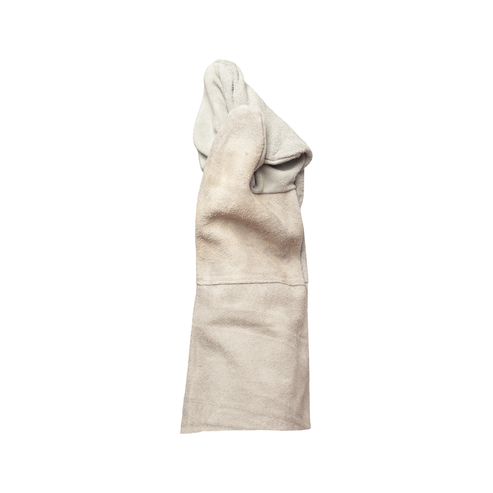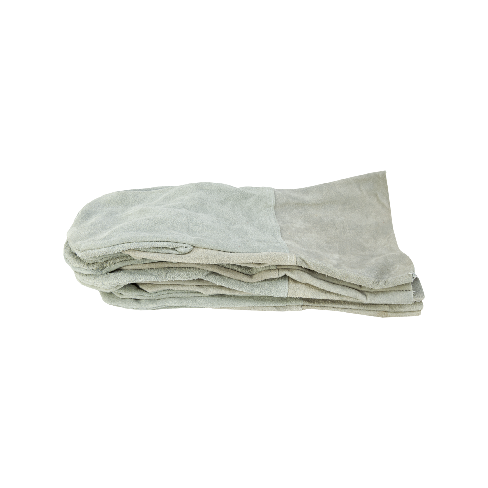 Данные рабочие рукавицы производятся из кожевенного спилка толщиной 0,6-0,8 мм и прошиваются лавсановыми нитями. Такой материал высокоустойчив к прогоранию. Наличие кожаной манжеты в виде широкой юбки позволяет легко снять крагу с руки в случае необходимости.