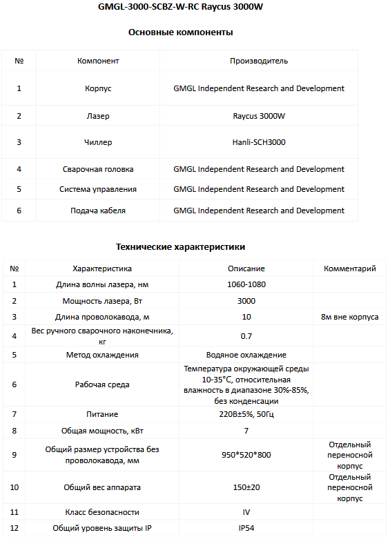 Аппарат GMGL-3000-SCBZ-W-RC Raycus 3000W 4 в 1 для ручной лазерной сварки, резки, очистки и зачистки швов предназначен для работы с токопроводящими металлами, включая нержавеющие, легированные, низкоуглеродистые и оцинкованные стали, а также алюминий и его сплавы. Лазерная сварка выделяется своей простотой в использовании, чистотой шва и высокой скоростью выполнения работ. Не требует подключения газа для сварки. Ключевые преимущества модели включают долговечный лазер, удобство эксплуатации, компактные размеры и встроенное водяное охлаждение. Сварочный пистолет с водяным охлаждением позволяет сваривать материалы толщиной до 6 мм. Дополнительный механизм подачи обеспечивает качественную и ровную подачу проволоки в зону сварки.