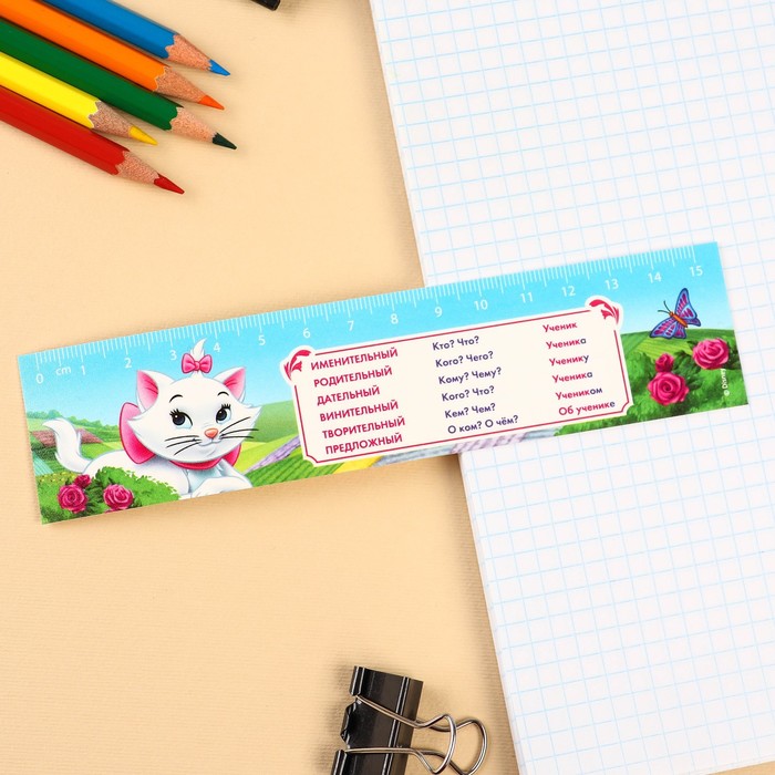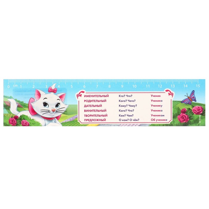 Линейка-закладка пластиковая 15 см ЗЛ-15 "Справочный материал Русский Язык" "Кошечка Мари" гибкая