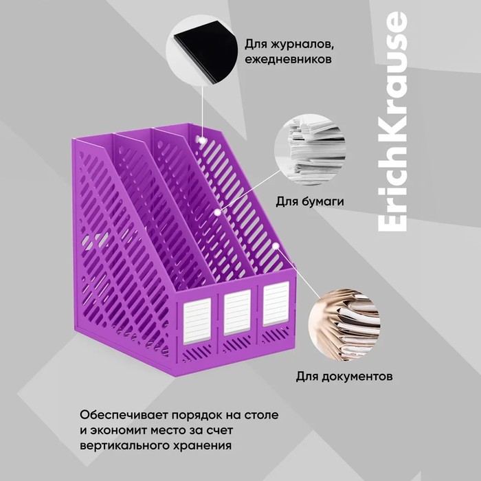 Настольная подставка для хранения большого объема документов, журналов и каталогов. Изготовлена из высококачественного пластика. Проста в сборке и надежна в эксплуатации. Экономит пространство на рабочем столе.