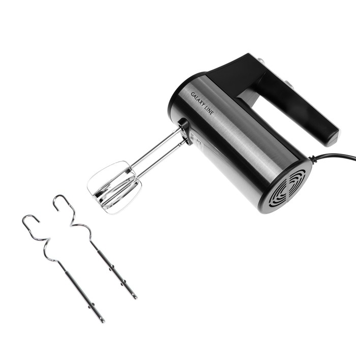 Миксер Galaxy LINE GL 2223, ручной, 400 Вт, 5 скоростей, режим "турбо", чёрно-серебристый