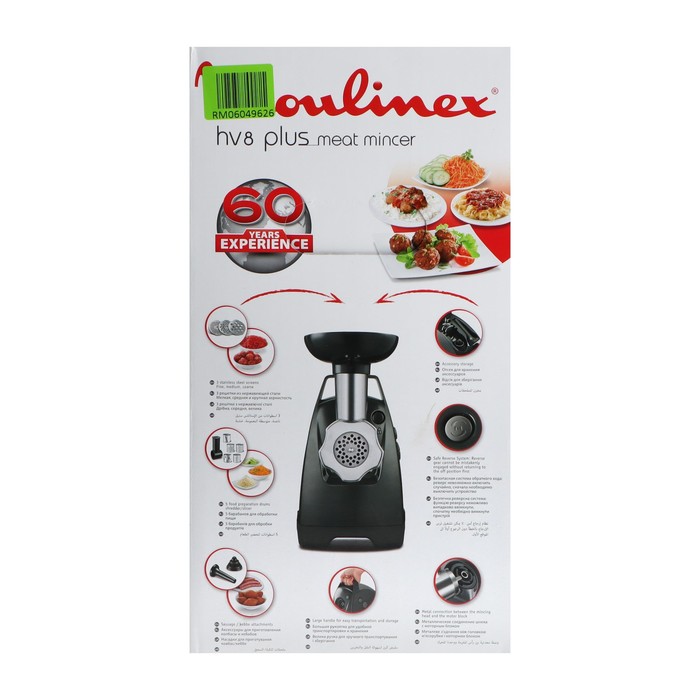 Мясорубка MOULINEX ME684832, 2000 Вт, 3.5 кг/мин, реверс, 8 насадок, чёрная