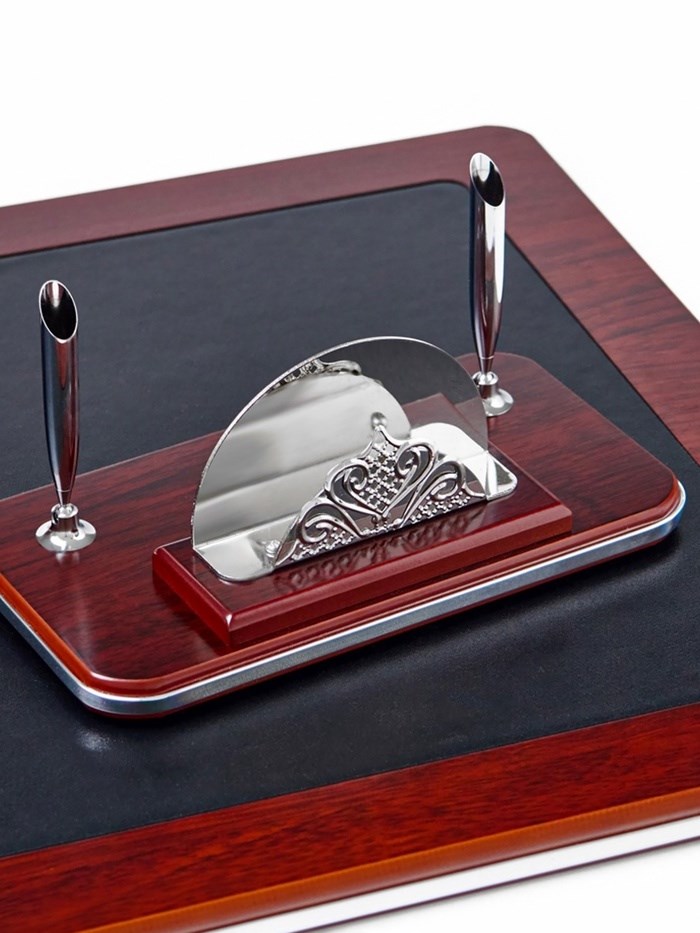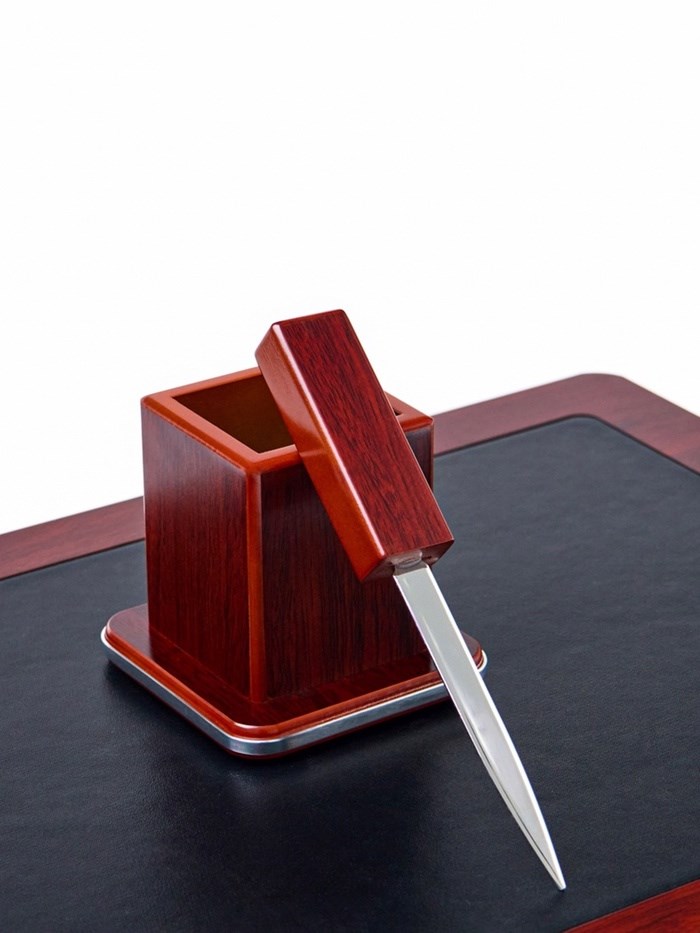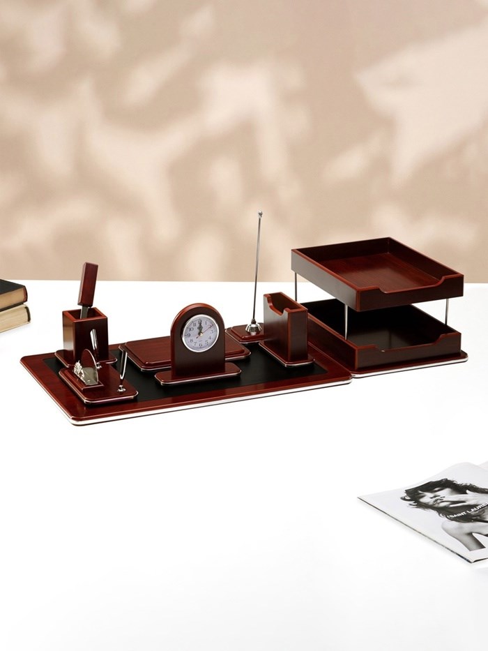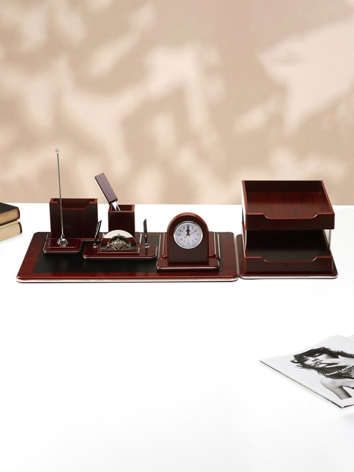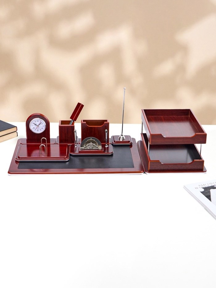 Компактный настольный набор поможет избежать хаоса на рабочем месте. Храните в нём канцелярские принадлежности или другие мелочи, чтобы правильно организовать пространство. К тому же изделие имеет минималистичный дизайн и выполнено под дерево, поэтому оно украсит собой любое место как декоративный элемент.