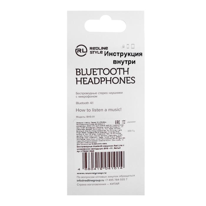Наушники Red Line BHS — 01, беспроводные, вкладыши, микрофон, BT 4.1, 55 мАч, белые