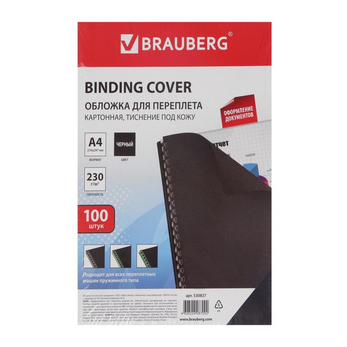 Обложки для переплета A4, 230 г/м2, 100 листов, картонные, черные, тиснение под Кожу, BRAUBERG 530837 поможет организовать ваше рабочее пространство и время. Востребованные предметы в удобной упаковке будут всегда под рукой в нужный момент.