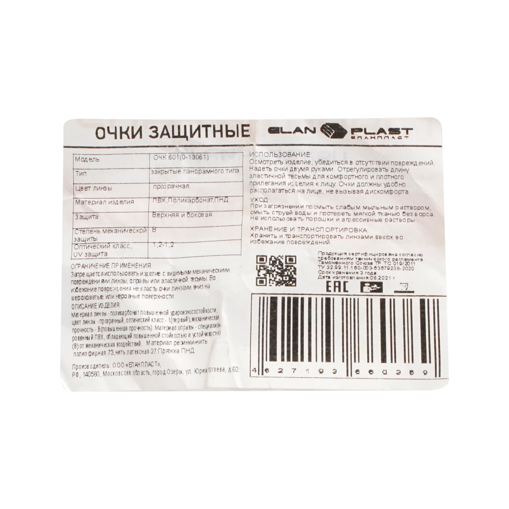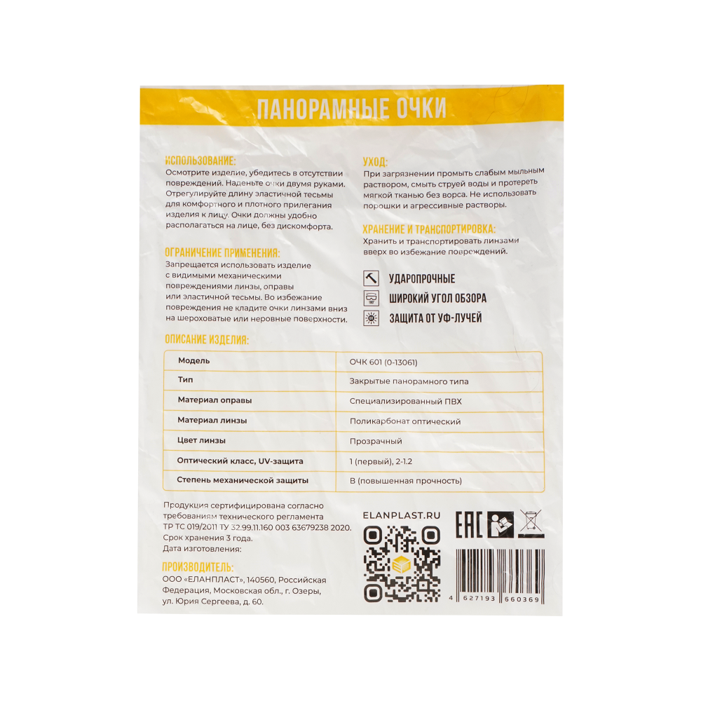 Очки 3П2 Панорама закрытые прозрачные, прямая вентиляция, арт. 30211