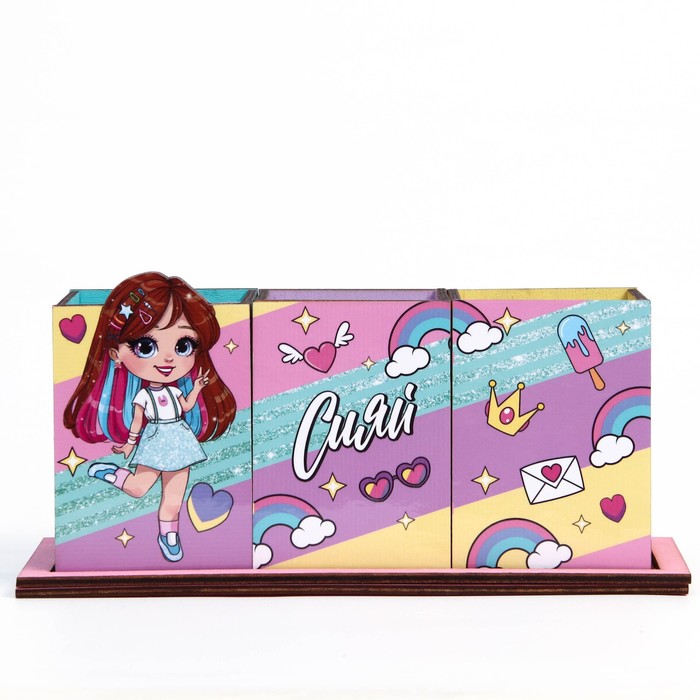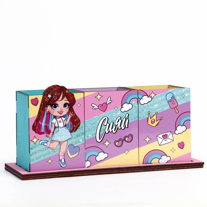 Органайзер для канцелярии «Сияй» девочка, 6,5 х 6,5 х 12,2 см