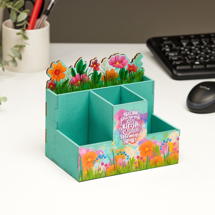 Органайзер для канцелярии "Ты сам рисуешь свою жизнь…" 4 отделения 15х10х14