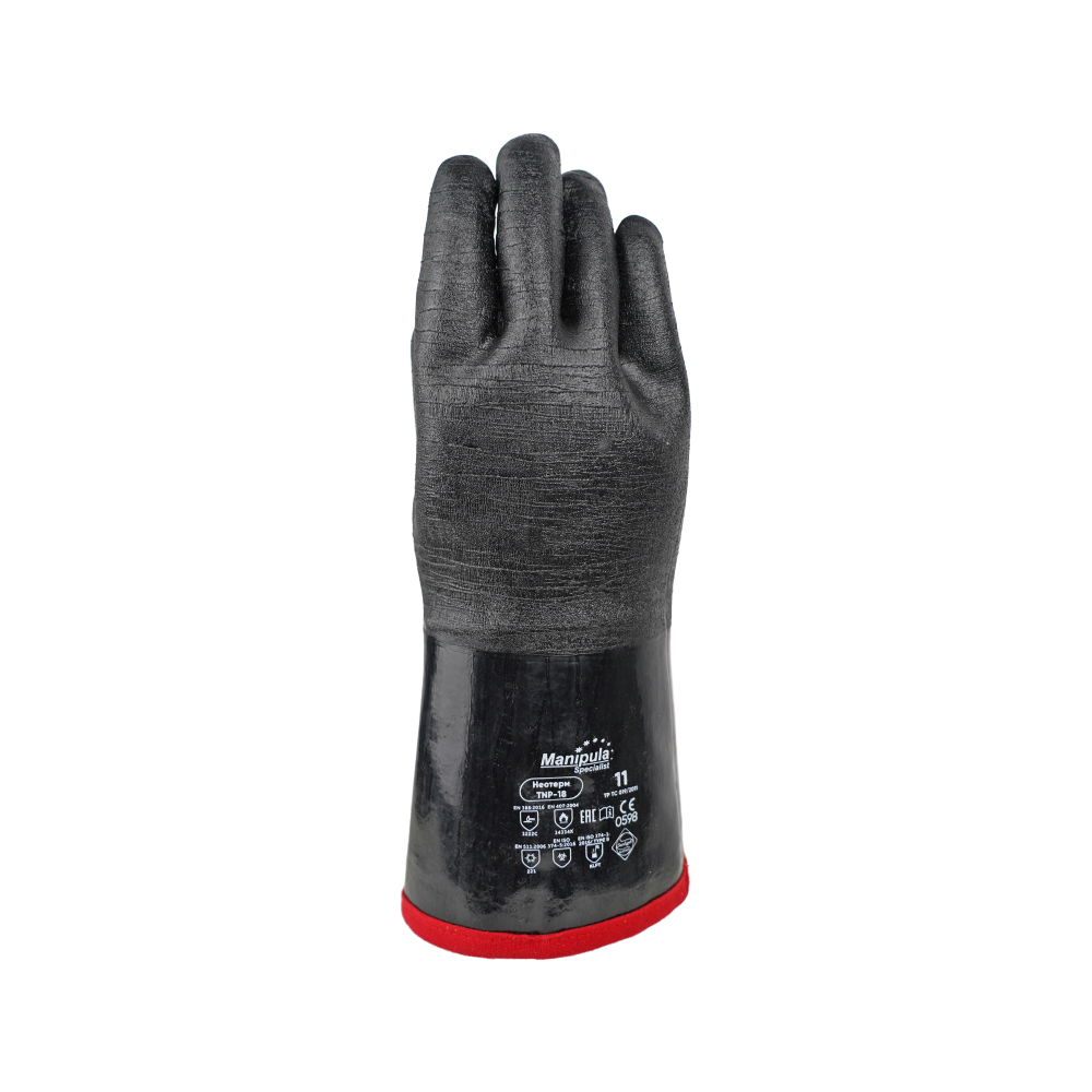 В составе перчаток Неотерм (TNP-18) — термоизоляционный материал, который защищает руки при высоких температурах. Покрытие из неопрена обеспечивает защитой от химических веществ. Перчатки защищают руки и в холодное время года, при температуре до -35°C. Нашли свое применение во многих сферах и отраслях промышленности: рыбной, химической, нефтедобывающей, в металлургической, при перевозке химикатов, деревообработке.