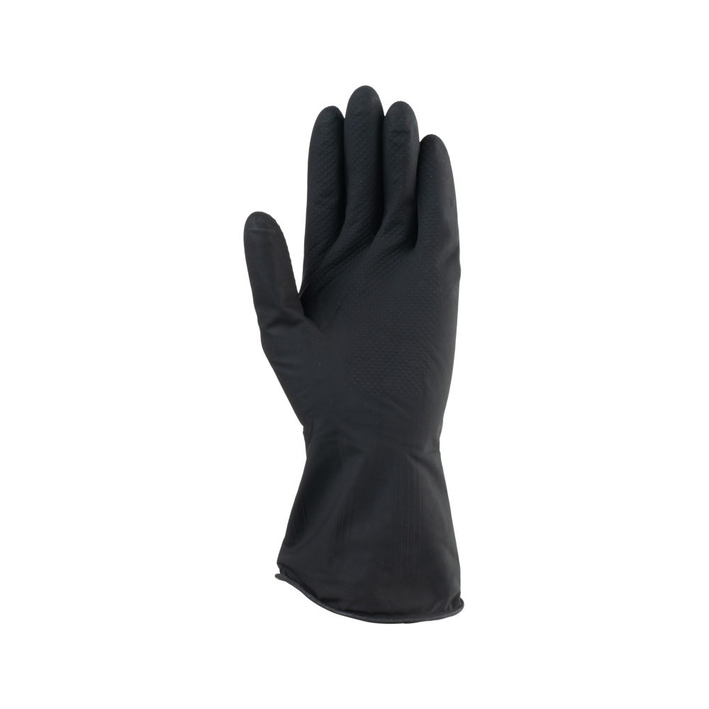 Перчатки КЩС Тип 2 состоят из двух слоев. В составе верхнего – латекс с добавлением сажи. Внутренний изготовлен из латекса высокого качества, который предотвращает возникновение аллергических реакций. Небольшая толщина изделия помогает выполнять точные работы. При этом сохраняется высокая тактильная чувствительность пальцев. Основное применение: защита рук при работе с растворами кислот и щелочей (до 20%), солями, сыпучими и красящими веществами, растительными и животными жирами.