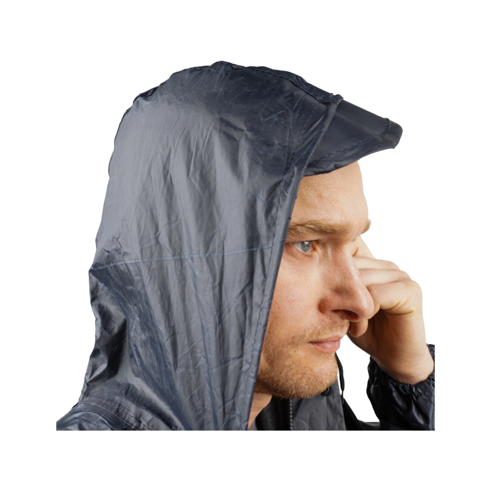 Плащ влагозащитный из нейлона темно-синий, с капюшоном, для мужчин и женщин