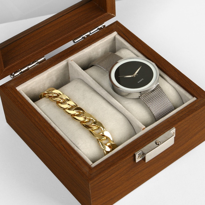 Подставка для часов, браслетов, дерево, 2 места 11,8×11,8×7,5 см, цвет серый