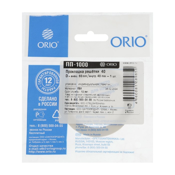 Прокладка ORIO ПП-1000, d=60/40 мм, плоская, 1 шт.