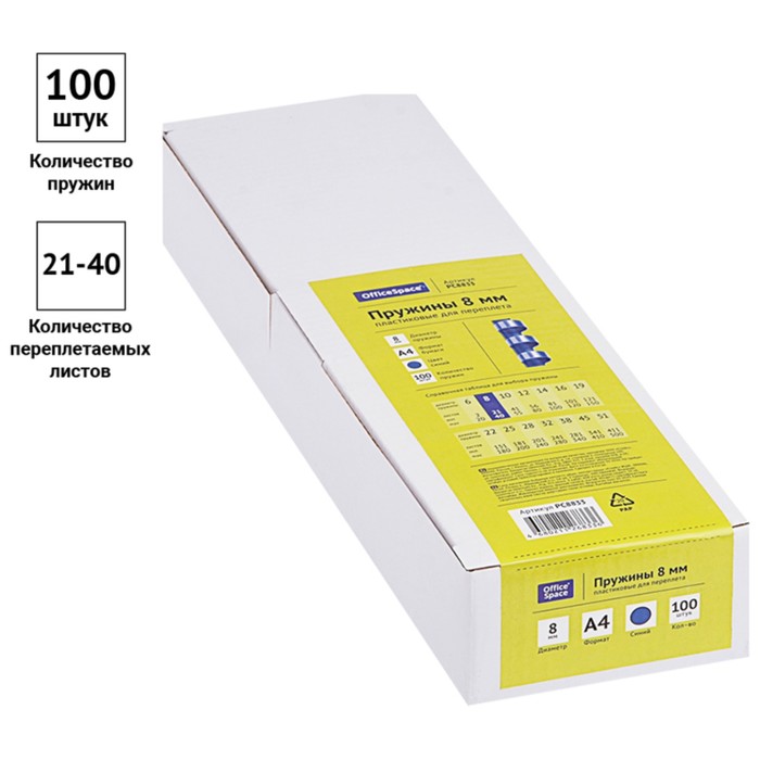 Пружины д/переплета ПЛАСТИК D=08мм 100шт, (сшив 21-40л), синии, OfficeSpace