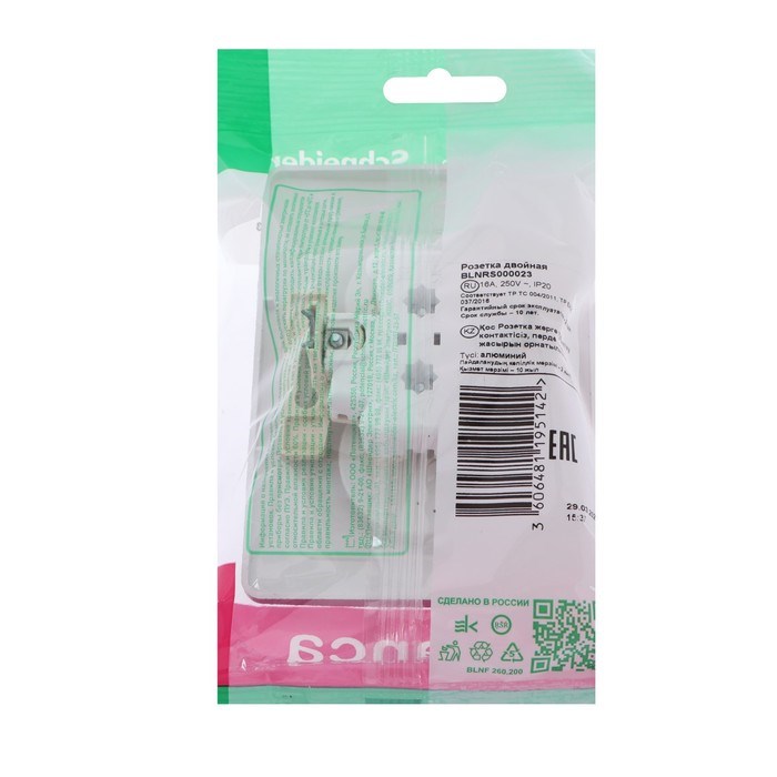 Розетка двойная SE Blanca, 16 А, 250 В, встраиваемая, без з/к, IP20, алюминий, BLNRS000023