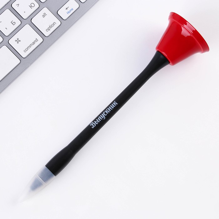 Ручка прикол колокольчик шариковая на открытке на выпускной «Удачи тебе, Выпускник!» синяя паста 0.8 мм
