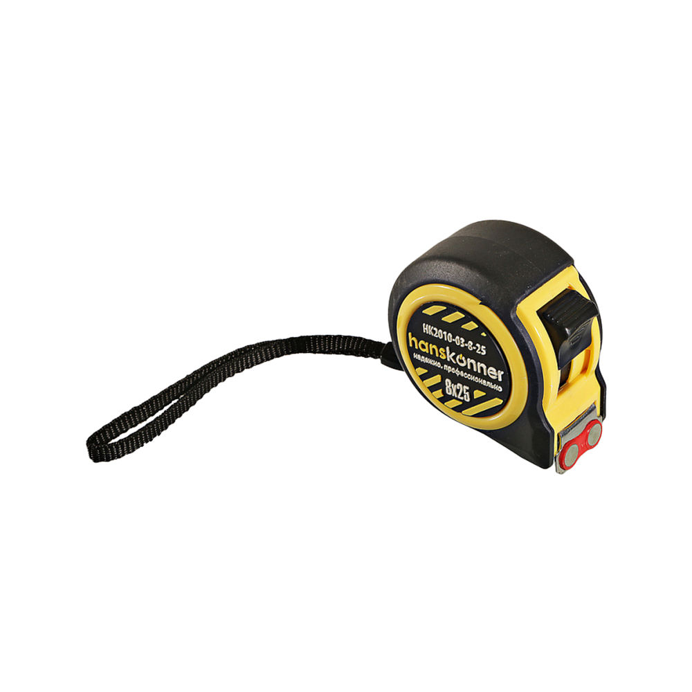 Рулетка 8 м x 25 мм, 2 стопа, мощный магнит, Hanskonner HK2010-03-8-25