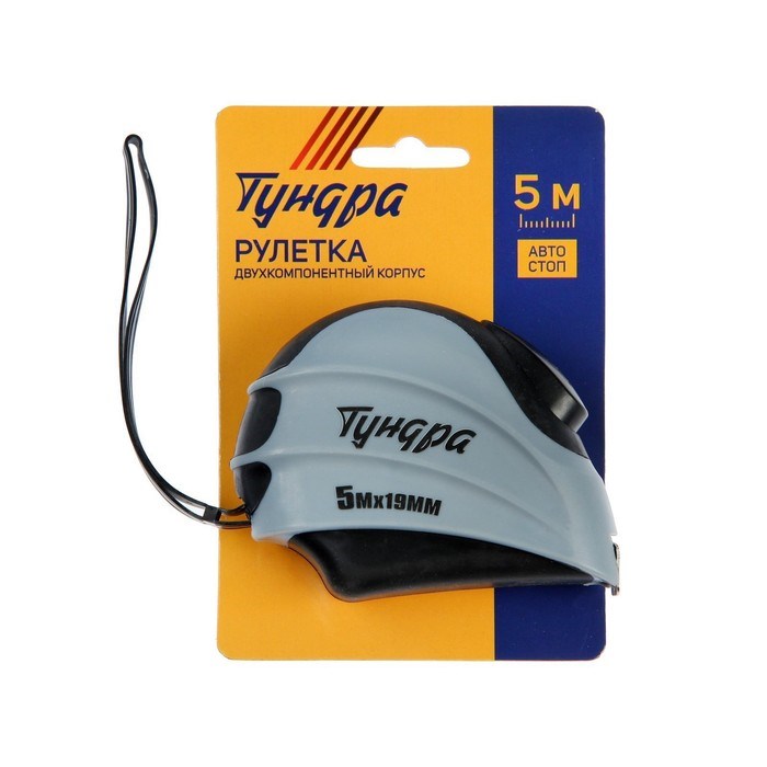 Рулетка ТУНДРА, двухкомпонентный корпус, автостоп, 5 м х 19 мм