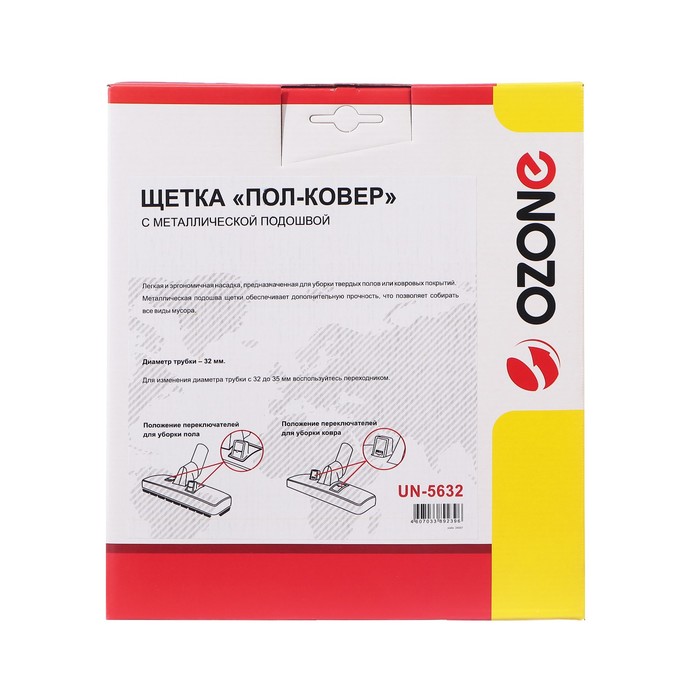 Щетка для пылесоса «Пол-ковер» Ozone с металлической подошвой — это универсальный аксессуар, который позволяет эффективно очищать как твердые, так и ковровые покрытия. Она имеет ширину 300 мм, что обеспечивает большую площадь уборки за один проход.