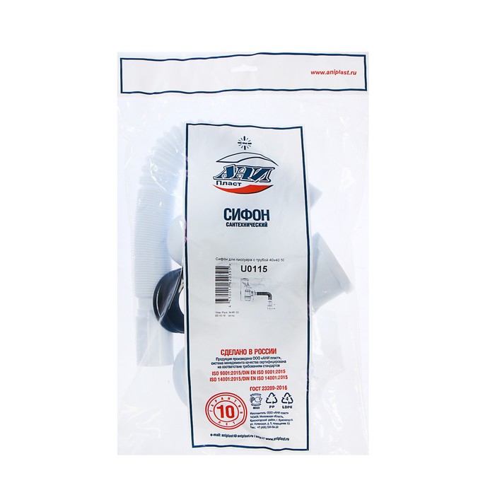 Сифон "АНИ Пласт" U0115, 40 х 40/50 мм, для писсуара, с трубой