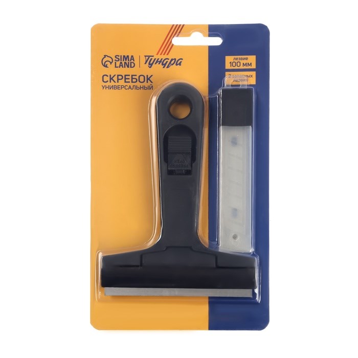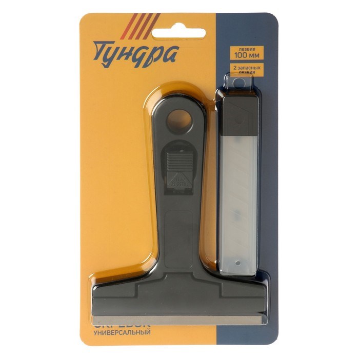 Скребок ТУНДРА, пластиковый корпус, выдвижное лезвие, 100 мм, 2 запасных лезвия