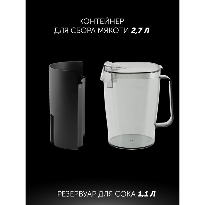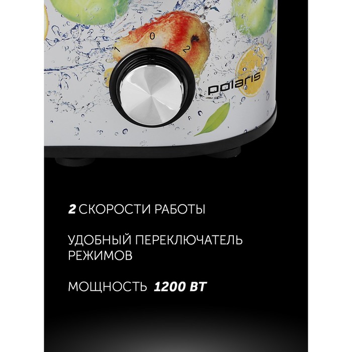 Соковыжималка Polaris PEA 1241A, центробежная, 1200 Вт, 1.1/2.7 л, 21000 об/мин, серебристая