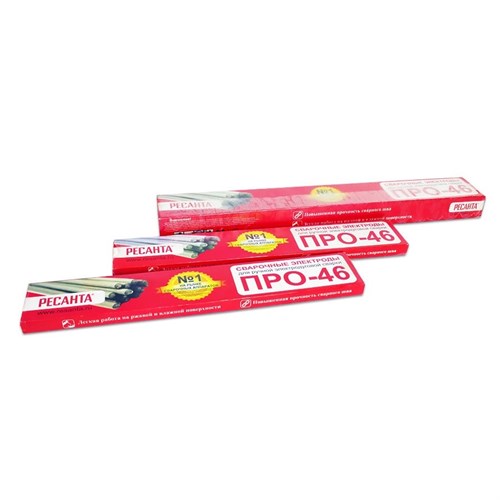 Сварочные электроды РЕСАНТА ПРО-46: • Малочувствительны к качеству подготовки кромок свариваемых деталей. • Позволяют проводить сварку оцинкованной, окрашенной, загрязненной и слегка ржавой стали, а также на обильно увлажненной поверхности. • Обладают повышенной, на 20% большей, прочностью сварного шва по сравнению с электродами марки МР-3 • Позволяют выполнять сварку на предельно низких токах во всех пространственных положениях, в том числе «сверху вниз». • ПРО-46 просты в применении даже для начинающих сварщиков, в сравнении с моделями основных конкурентов, т.к. отличаются более легким начальным и повторным поджигом, мягким и стабильным горением дуги. • Малые потери металла от разбрызгивания • Отличное формирование металла шва • Легкая отделимость шлаковой корки • Возможность проводить сварку на переменном и постоянном токах