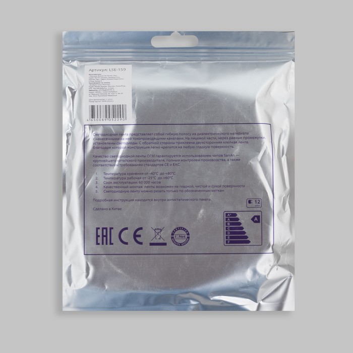 Степень защиты светодиодной ленты соответствует стандарту IP20, что подразумевает использование только в сухих и проветриваемых помещениях.