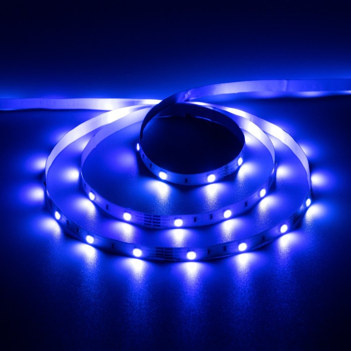 Светодиодная лента длиной 5 метров работает от постоянного тока с напряжением 12В. Лента является решением для воплощения в жизнь любого элемента декора. Она подойдет для декорирования ниш в стенах, многоуровневых потолков и мебели. Данная модель светодиодной ленты является многоцветной. Каждый светодиод такой ленты имеет 3 базовых цвета: синий, зеленый и красный. В зависимости от используемого контроллера можно получить до 256 различных оттенков свечения. По сравнению с лампами накаливания светодиодная лента эквивалентна лампам мощностью 20 Вт.