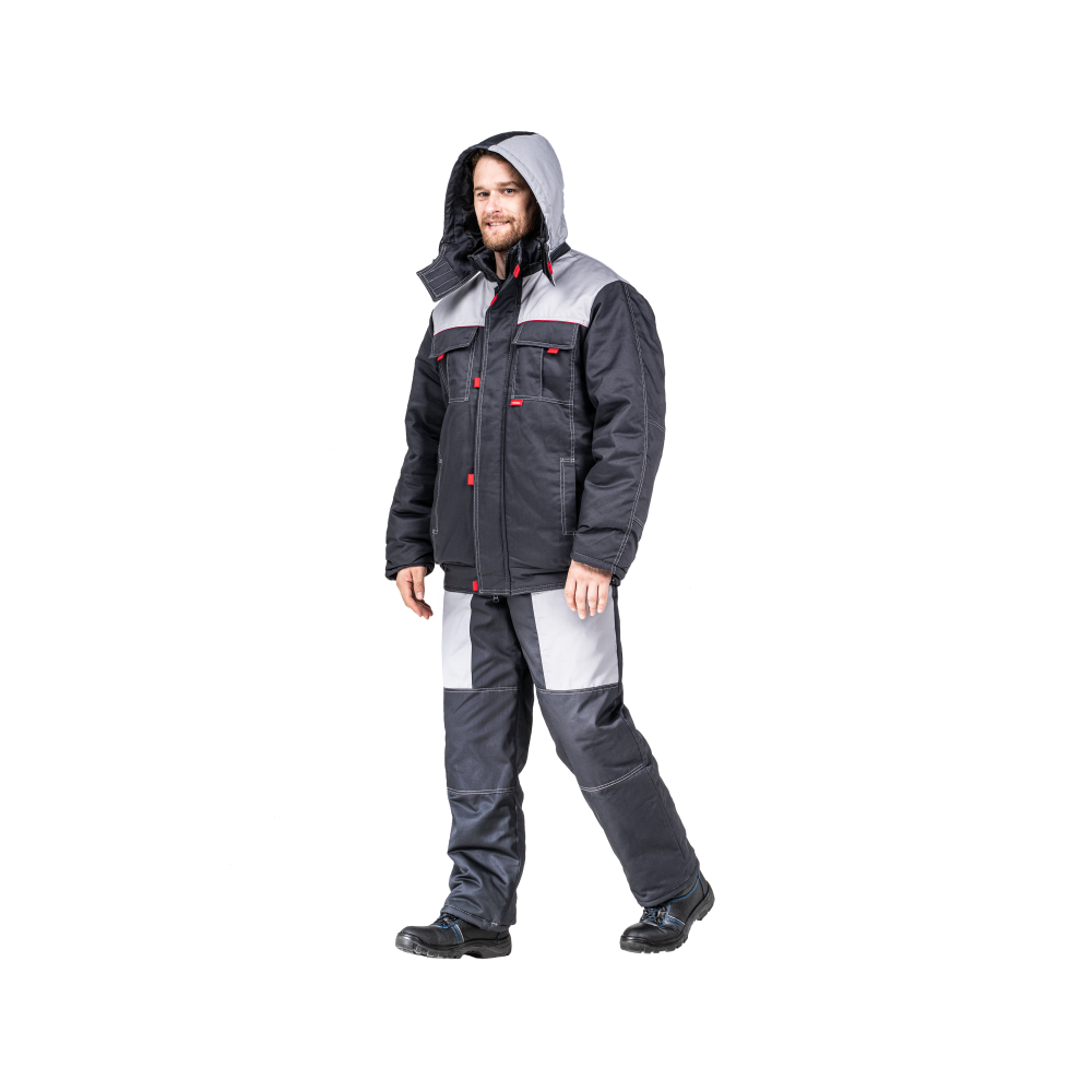 Костюм рабочий Фаворит-Мега утепленный, куртка+полукомбинезон, темно-серый+черный+красный