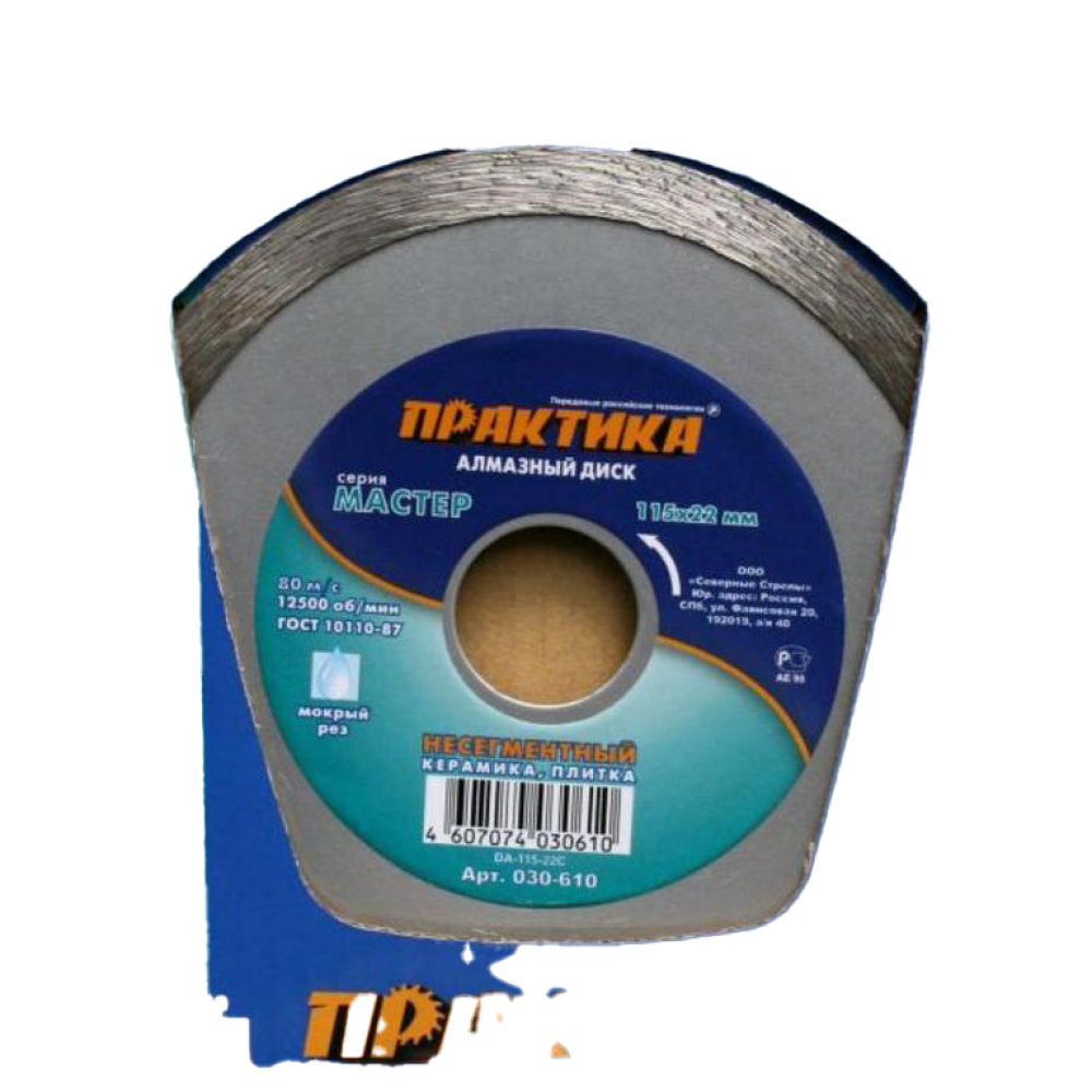 Диск алмазный сплошной 115 х 22 мм, Практика 030-610 Мастер